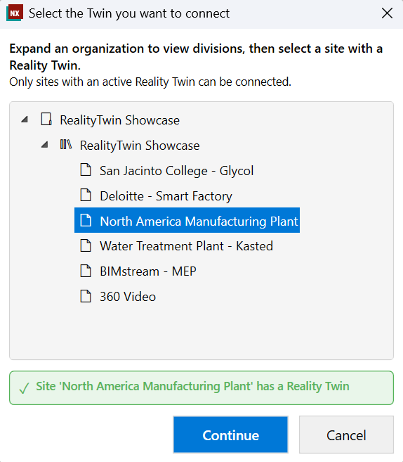 then the Site that contains the desired RealityTwin.