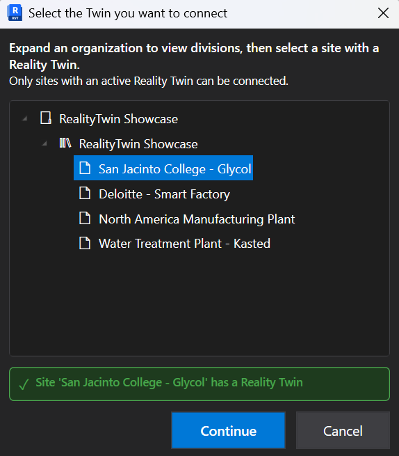 Section titled “Asset Manager”The Asset Manager allows you to browse, manage, and import assets from the selected RealityTwin into your Revit model.