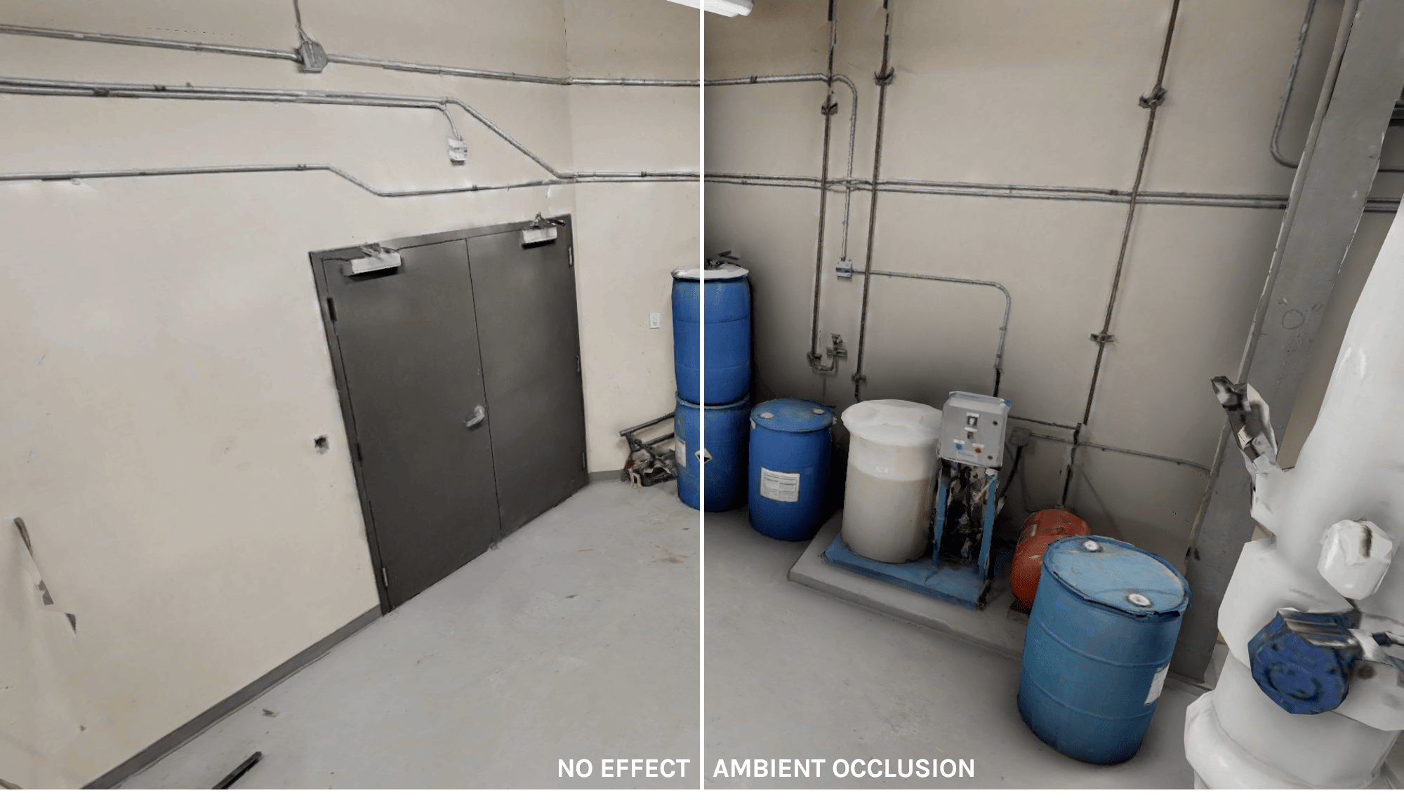 Section titled “Ambient Occlusion”The ambient occlusion post-processing effect is used to bring some dark areas in surfaces, holes, creases and intersections when they are close each other.