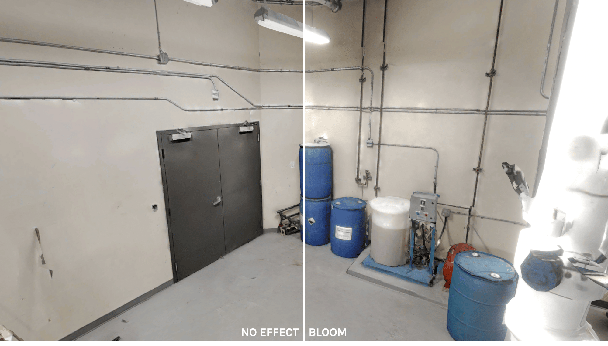 The bloom effect is used to dazzle the camera by creating light edges extending from bright boundary areas in an image.