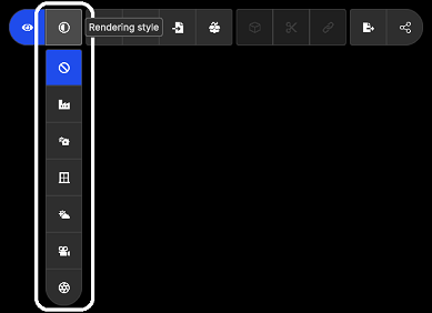 Section titled “Easy effects (presets)”Before exploring advanced effects, it’s helpful to experiment with the app’s various rendering style presets. Simply click on your preferred preset in the rendering style section of the toolbar. Some presets may work better for indoor or outdoor environments, so try different options to see what best suits your project.