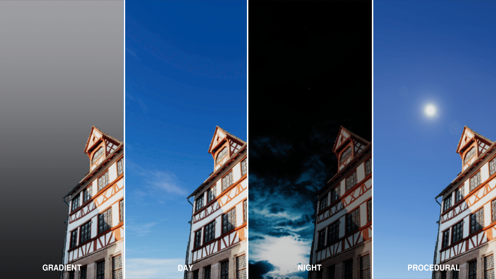 Section titled “Skybox”The skybox effect is used to show a sky in order to achieved appropriate lighting conditions for any indoor or outdoor environment.