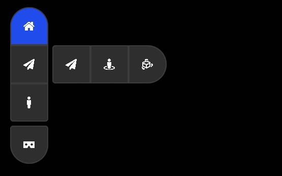 Section titled “Navigation Menu”You will notice the navigation menu at the top left of the screen, this menu allows you to explore your space with multiple navigation modes such as free-view mode, third-person mode or orbit mode. Navigation mode are categorised by types, feel free to select the one that best suits your needs and preferences.
