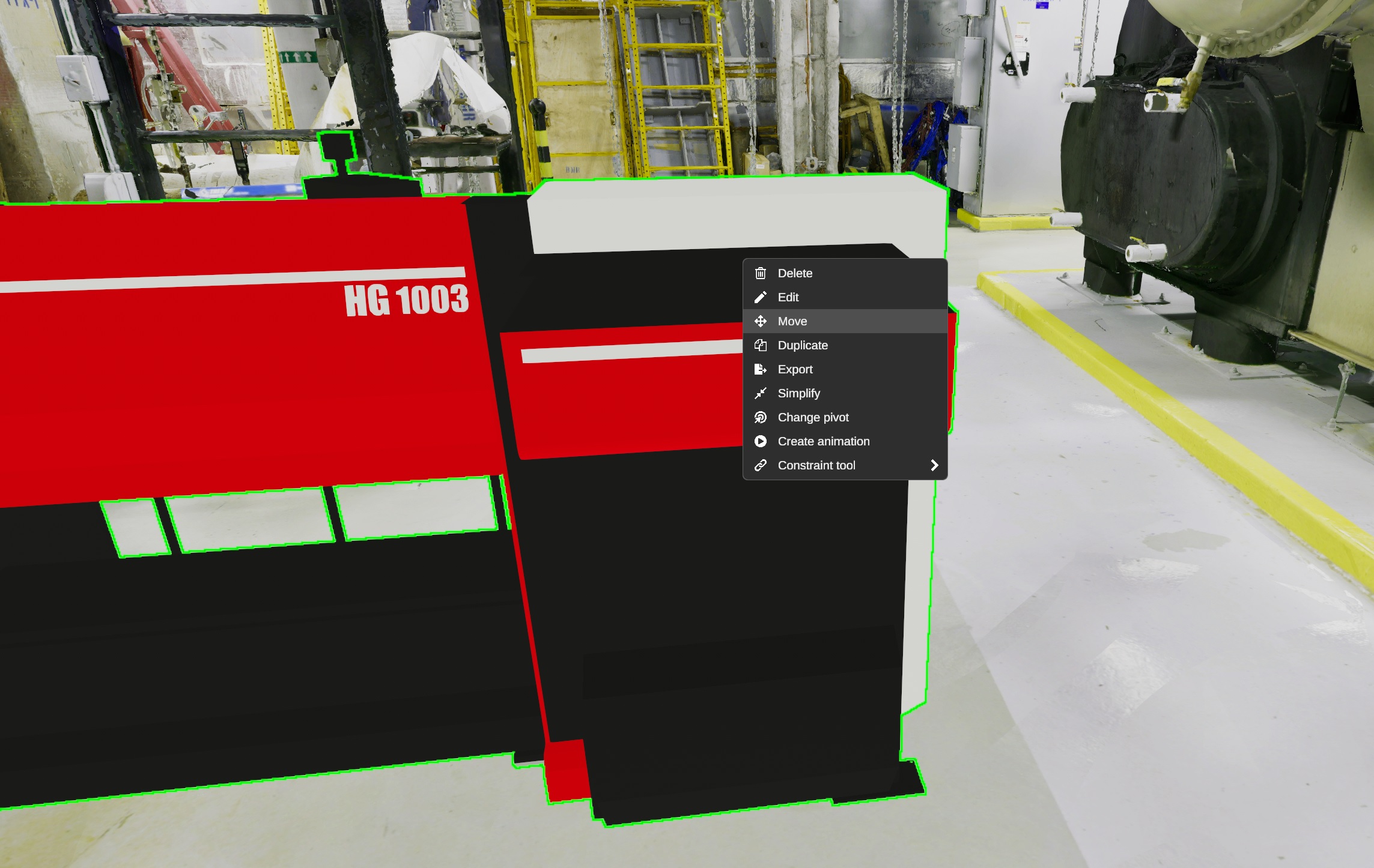 Section titled “Contextual menu”Right-clicking on objects and elements placed in your space displays a contextual menu, allowing you to reach your main actions more efficiently. If the object is part of the scene, it must be selected before using the right click, in order to open the context menu.