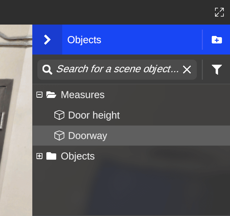 Section titled “The object panel”The object panel allows you to visualize and edit your layout easily. All the objects you placed can be found in the panel. You can open/close it at any time by clicking on the arrow button in the top left corner of the panel.