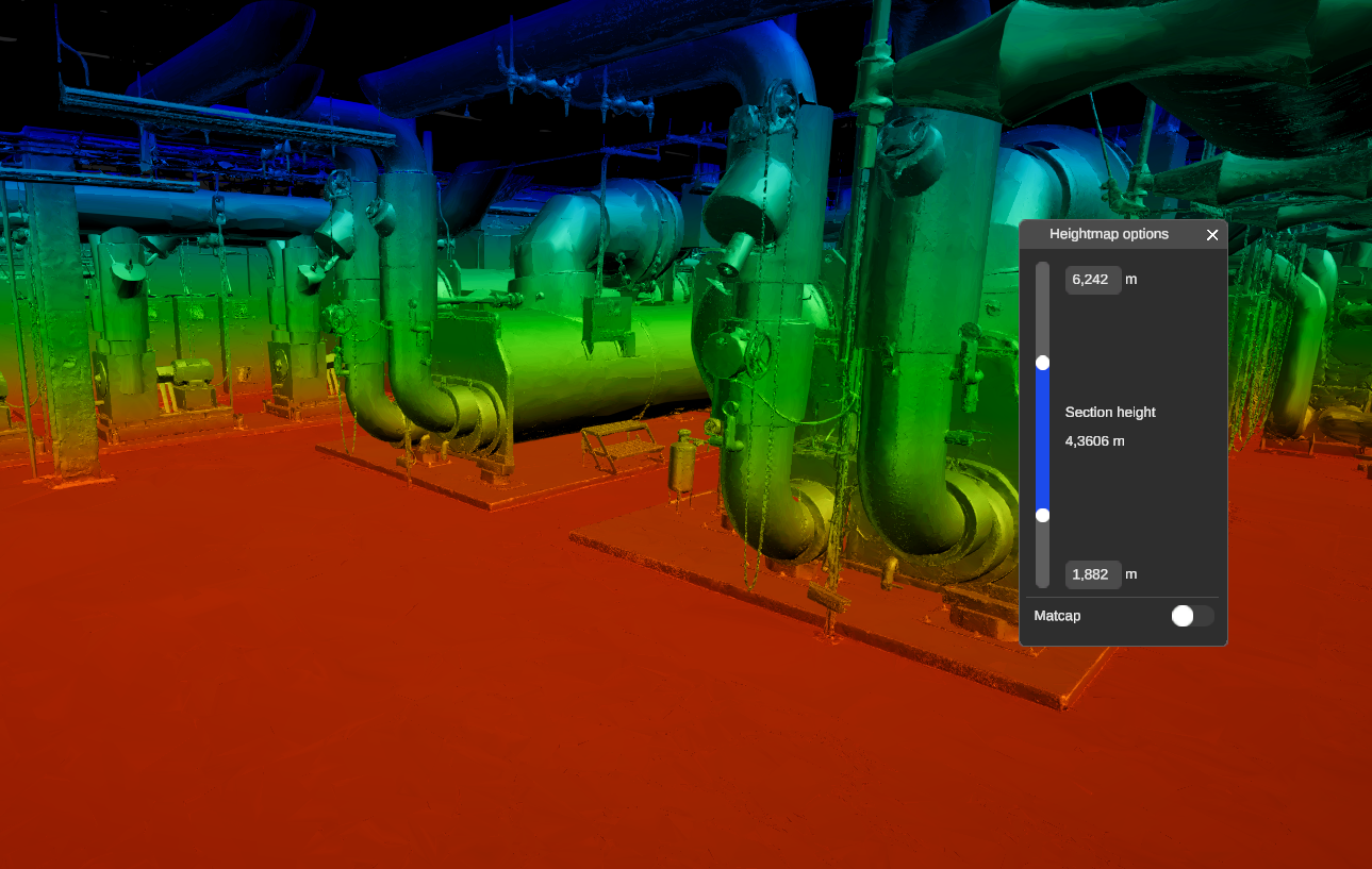 Section titled “Heightmap”The heightmap visualization mode allows you to understand your space on the standpoint of height.