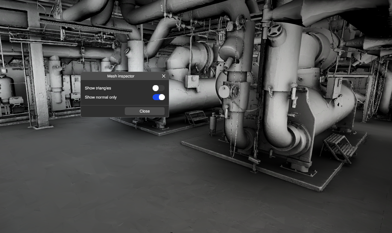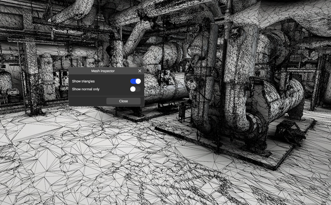 Section titled “Mesh inspection”The Mesh inspection mode allows you to see the meshes in your environment without their textures.