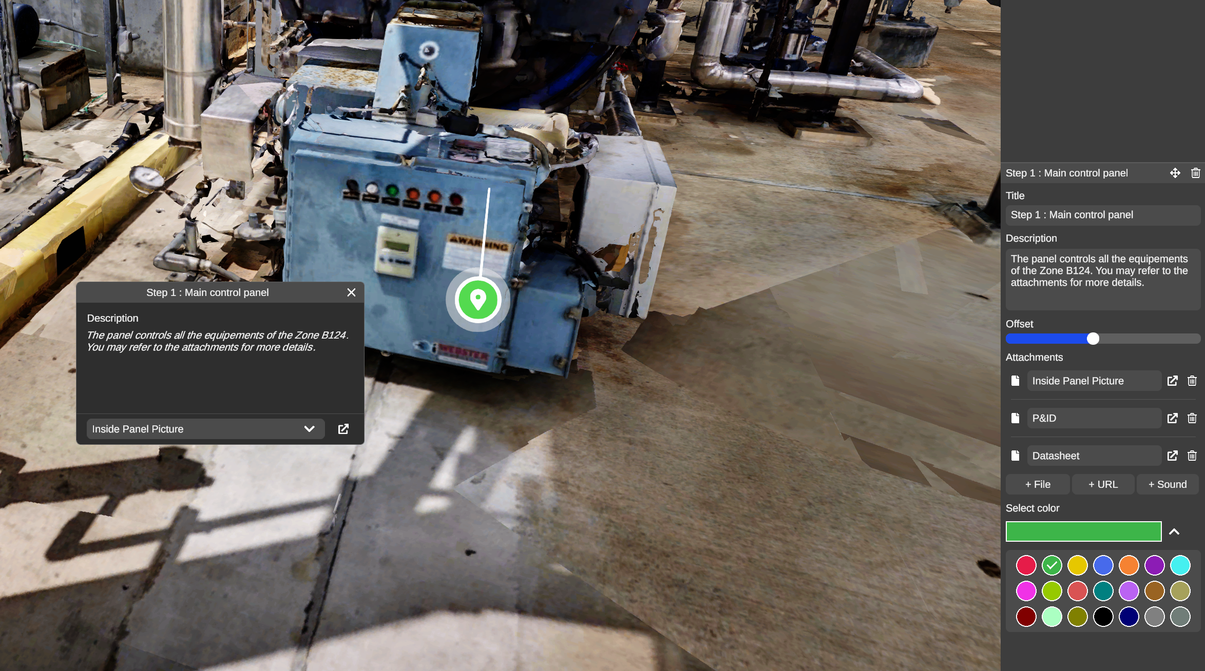 Section titled “Place annotations”The annotation tool allows you to contextually document your space by placing annotations at specific spots in your 3D environment. These annotations can contain text, links, documents and much more !