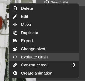 Section titled “How to Access the Clash Detection Tool:”- Right-click on the asset either in the 3D environment or in the right-side panel.