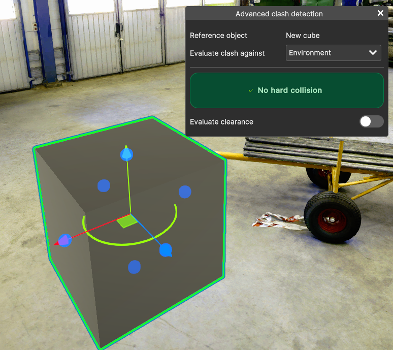 - Clearance Collision Detection: identifies clashes beyond the object boundaries. Helping users to determine if an object can navigate narrow paths or fit through doorways.