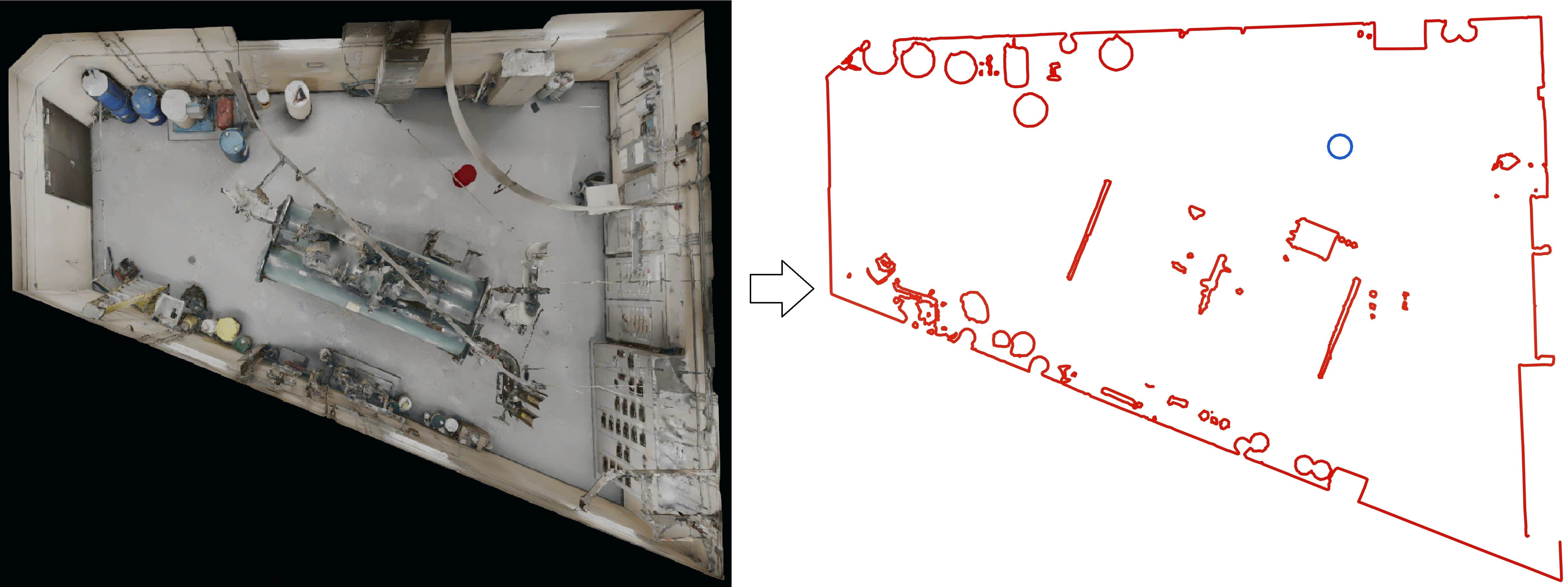 The application allows you to easily generate a 2D plan from a slice of the environment. You can export the generated plans as PNG/JPEG image or as AutoCAD DXF.