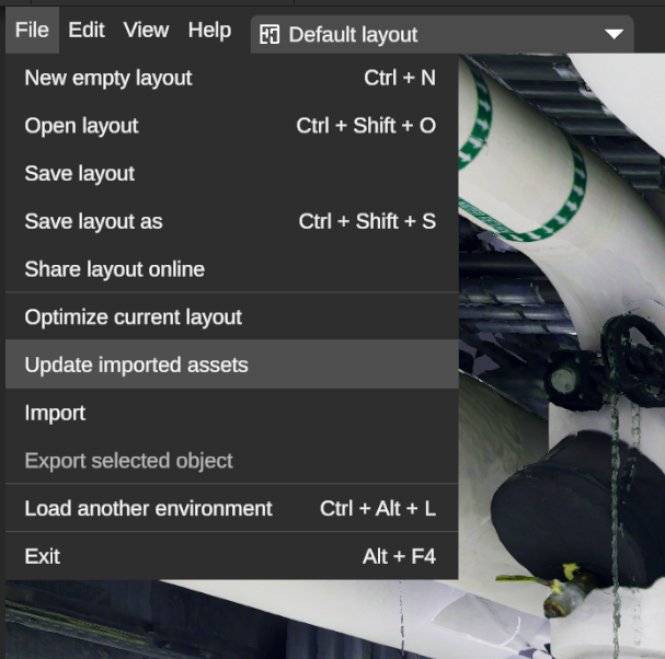 Section titled “Syncing 3D models (file tracking)”The RealityPlan application allows you to seamlessly iterate through your designs, notifying you of external file changes and allowing you to refresh the associated assets within the application..