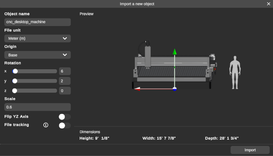 You may also adjust the rotation and scale of the 3D model, then you can add it to the library by pressing Import Object