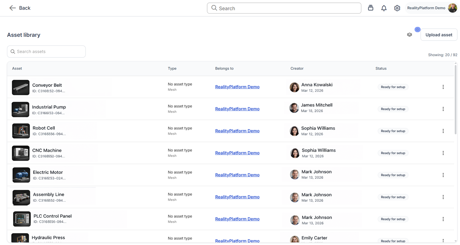 Section titled “RealityPlatform”RealityPlatform provides the main interface to upload and manage assets.