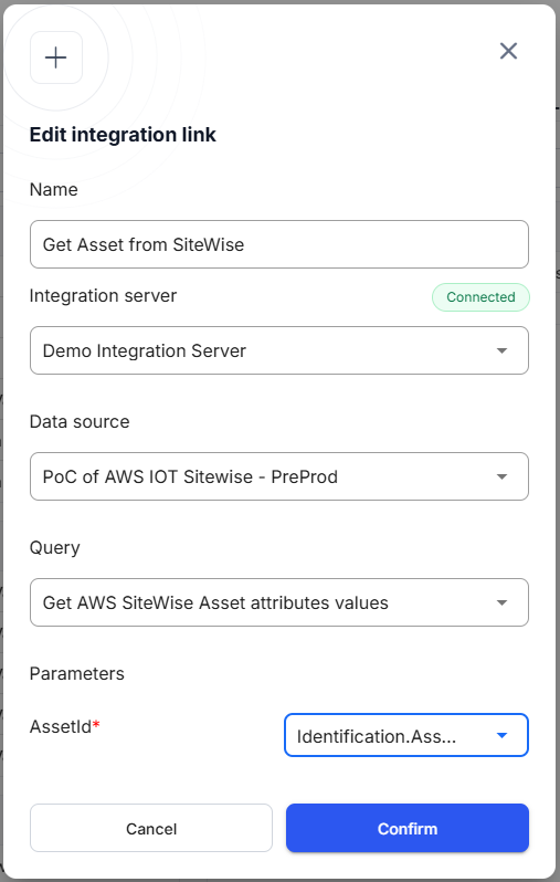 When this Asset Type is assigned to assets, the linked property values will automatically be passed to AWS SiteWise when running the integration.