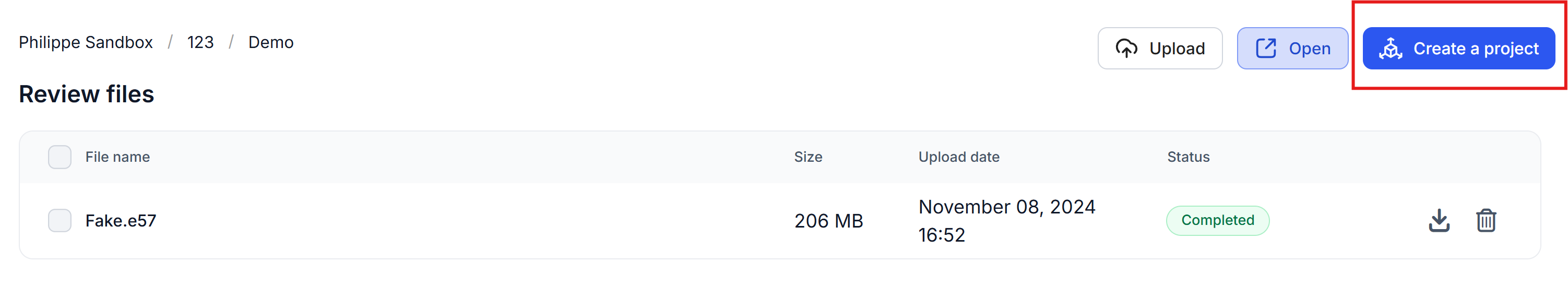 Section titled “Accessing the project editor”Once you have uploaded all of your project data and ready to launch you build, you may access the project editor within the pointcloud View Datasets section and select Create a project.