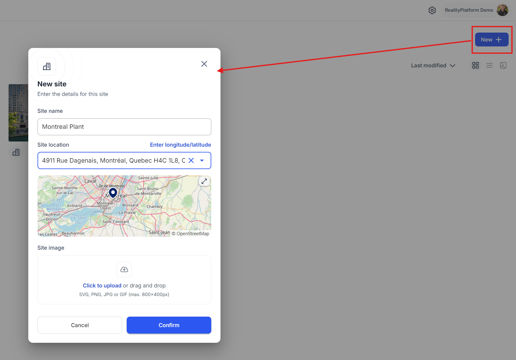 When creating a new Site, it’s essential to enter a physical address or geographic coordinates. This enables the Map View feature, allowing you to visualize all your sites on an interactive map. Easily navigate and manage multiple sites, visually track project locations, and enhance operational oversight across different facilities.