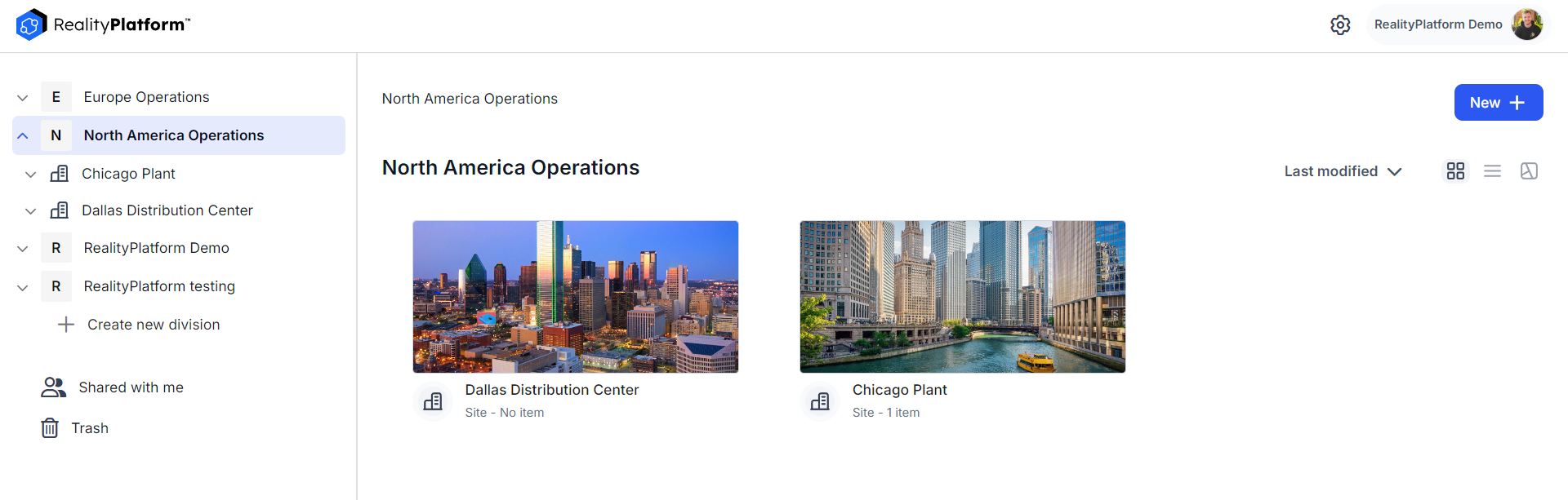 Example: Within the “Chicago Plant” site, files could include “Production Line Blueprints” (Folders), “Factory Floor Scan” (Pointclouds), and “New Equipment Installation” (Design Projects).
