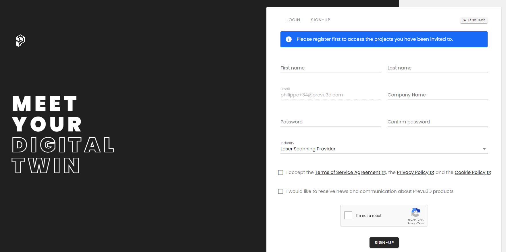 Alternatively, you can also click the Login button from the main Prevu3D website