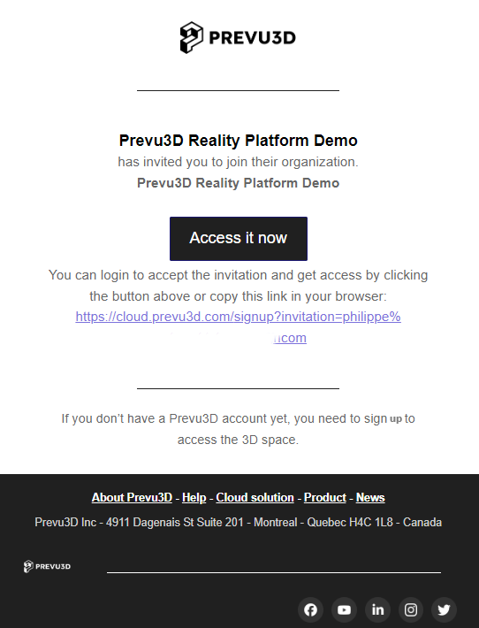 Section titled “Receiving an Invitation”When a project is shared with you, you’ll receive an email invitation to join RealityPlatform. Here’s what to do: