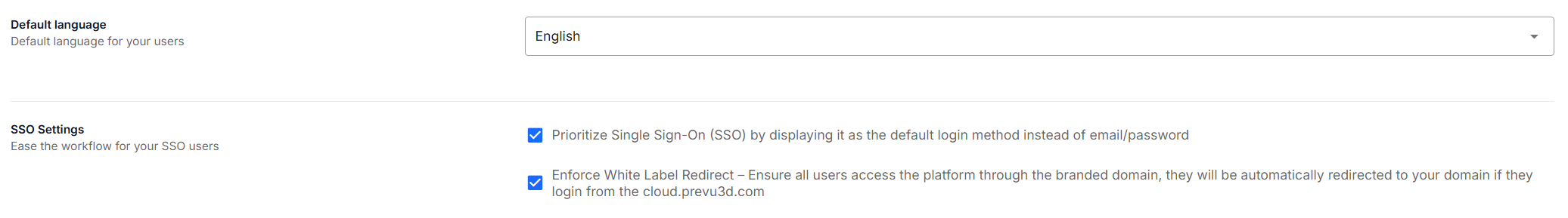 Enforce White Label Redirect — Ensure all users access the platform through the branded domain. Even if they attempt to log in via cloud.prevu3d.com, they will be automatically redirected to myCompanyName.prevu3d.com.