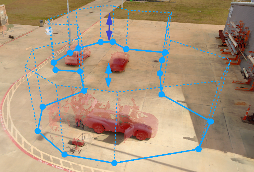 We select the layer and draw a clean volume around the cars. This tells the system: “For this layer, remove everything inside this defined region.”
