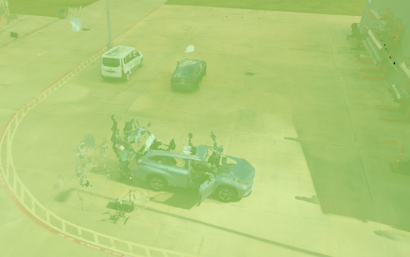 We added a layer that captured not only the facility but also some parked cars in the scan. These cars appear inside the dataset even though they are not relevant to the Twin.