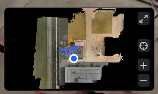Section titled “Minimap”The Minimap in RealityTwin is a spatial awareness tool located in the lower-left corner of the interface. It provides a real-time top-down view of your Twin, helping you maintain orientation and better understand your position within the larger environment.